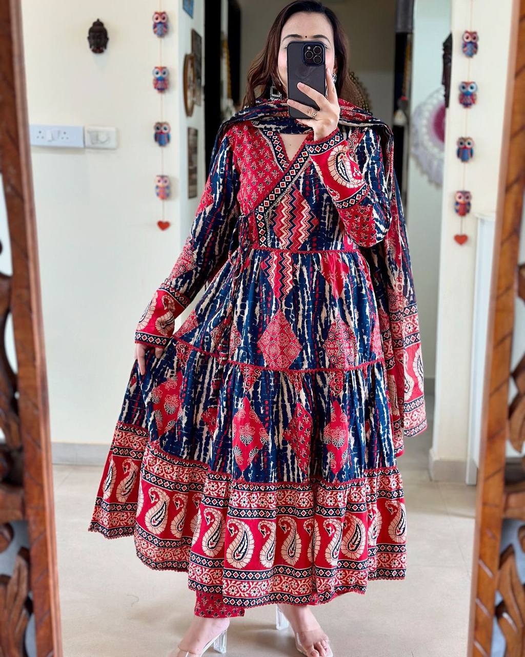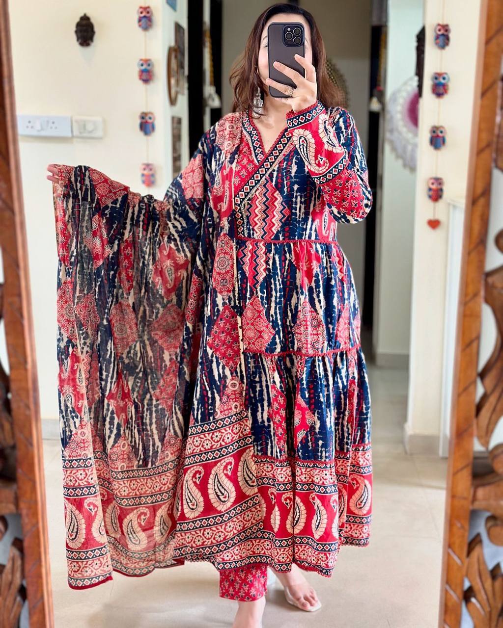 Designer Fine Cotton Suit set With Embroidery Handwork Highlighting
